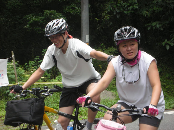 我和雪友曉玲及 Geoff 邊聊天邊騎上大斜坡(我竟然可以邊騎邊說話,還不怎麼喘?),在前面當領先車隊, Vivid 可以看得到我們的車尾燈,不會丟掉就好了,最後面還有 Johnny 和 Richie 把關。